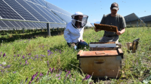 The National news picked up the potential conflict in Oregon between solar energy use of Agriculturally-zoned lands and beekeeping. A 73-acre solar project near Estacada in Clackamas County requested an exemption to build on agricultural land. To qualify, the solar project developer included establishing 100 beehives on the property and planting “bee-friendly forage” around the panels and “shade resistant native plants” beneath the solar panels. http://www.capitalpress.com/Oregon/20180608/beehive-solar-project-draws-opposition Under Oregon’s current land use goal of preserving farmland, solar power facilities can be no larger than 12 acres without an exception. Clackamas hearings officer Fred Wilson granted the exemption citing beehives and use of the area under the panels for forage. A non-profit farmland conservation group, 1,000 Friends of Oregon, challenged the Clackamas County conditional use permit. The Oregon Farm Bureau too apparently had an issue with the proposal, although it is not clear if they have contacted the Oregon State Beekeepers, a long-time Farm Bureau member. Mary Anne Cooper, public policy counsel for the Farm Bureau contested the project before the Oregon Board of Agriculture during a June 7 meeting in Hood River. The project developer, Steve Schmitt of Pacific Northwest Solar LLC, estimated the apiary will generate $75,000 per year. Opponents claimed the actual revenue would be about 80 percent lower. Fred Wilson, the hearing officer said “Even if income is less than the projected amount, the proposed apiary seems more likely than not to produce significant amounts of income that would still constitute contributing in a substantial way to the area’s existing agricultural economy,” He called the project “a win-win scenario.” A broad resolution that “supports a better definition of highly productive farmland” calling for stronger land use protections for farmland when siting solar projects and other energy facilities was unanimously approved by the Board of Agriculture. Yamhill County prohibits such facilities on top soil classes while Marion County has excluded them from “exclusive farm use” zones. Recently a Yamhill 12 acre array proposal was denied based on neighboring vineyard opposition. In contrast there is a 40-acre “clean-energy farm” in Eagle Point (outside Medford), the largest “solar apiary” in Jackson County that includes Honey bees. John Jacob, Old Sol apiaries and newly elected OSBA President, maintains 48 colonies interspersed among the solar panels. The colonies average100-200 pounds of honey/colony, compared to county average of 30-40 pounds/colony. https://www.solarpowerworldonline.com/2018/08/case-study-eagle-point-solar-farm-apiary/ Photo attached shows John inspecting one of his colonies in the Medford solar array John sees many benefits from his perspective as a beekeeper. Eagle Point “offers his bees the opportunity for a diverse diet” and additionally to avoid pesticides “ …… these are places where we can take our bees to help their overall health and to recover from their pollination duties.” A different proposal (not including bees or pollinators) for an 80 acre solar project near Medford, approved by Jackson County as an exemption to the 12 acre limitation, was struck down by the Oregon Court of Appeals (on some technicalities). The issue will go to the Oregon Supreme Court this next May. John says there are other projects of solar and bees in Southern Oregon being developed. A project in Vermont has called their combining solar array panels and planting for pollinators a success. https://www.rutlandherald.com/opinion/perspective/planting-for-pollinators-at-solar-arrays-a-success-story/article_95dbb728-d38e-58cd-9b87-6aa10add1bf7.html A survey of pollinator population at an early demonstration project in Middlebury resulted in an increase of greater than five-fold in unique pollinator populations in just one year. The Clackamas project will go ahead. 1,000 Friends of Oregon agreed to withdraw their opposition per agreement by the developer Pacific Northwest Solar, LLC to study how dual use of beekeeping and planting for pollinators works. Their attorney Meriel Darzen called the “pilot project…an interesting concept”. Pacific Northwest Solar agreed to drop their challenge of the current ruling of a 12 acre size limitation. The ODA, after an October 6 meeting, is continuing to look at regulations established in 2010 on solar and land use. http://www.capitalpress.com/Energy/20181005/settlement-allows-beehive-solar-project-to-go-forward